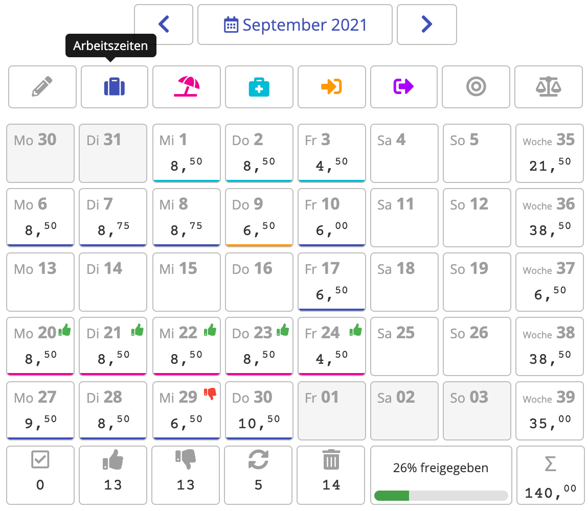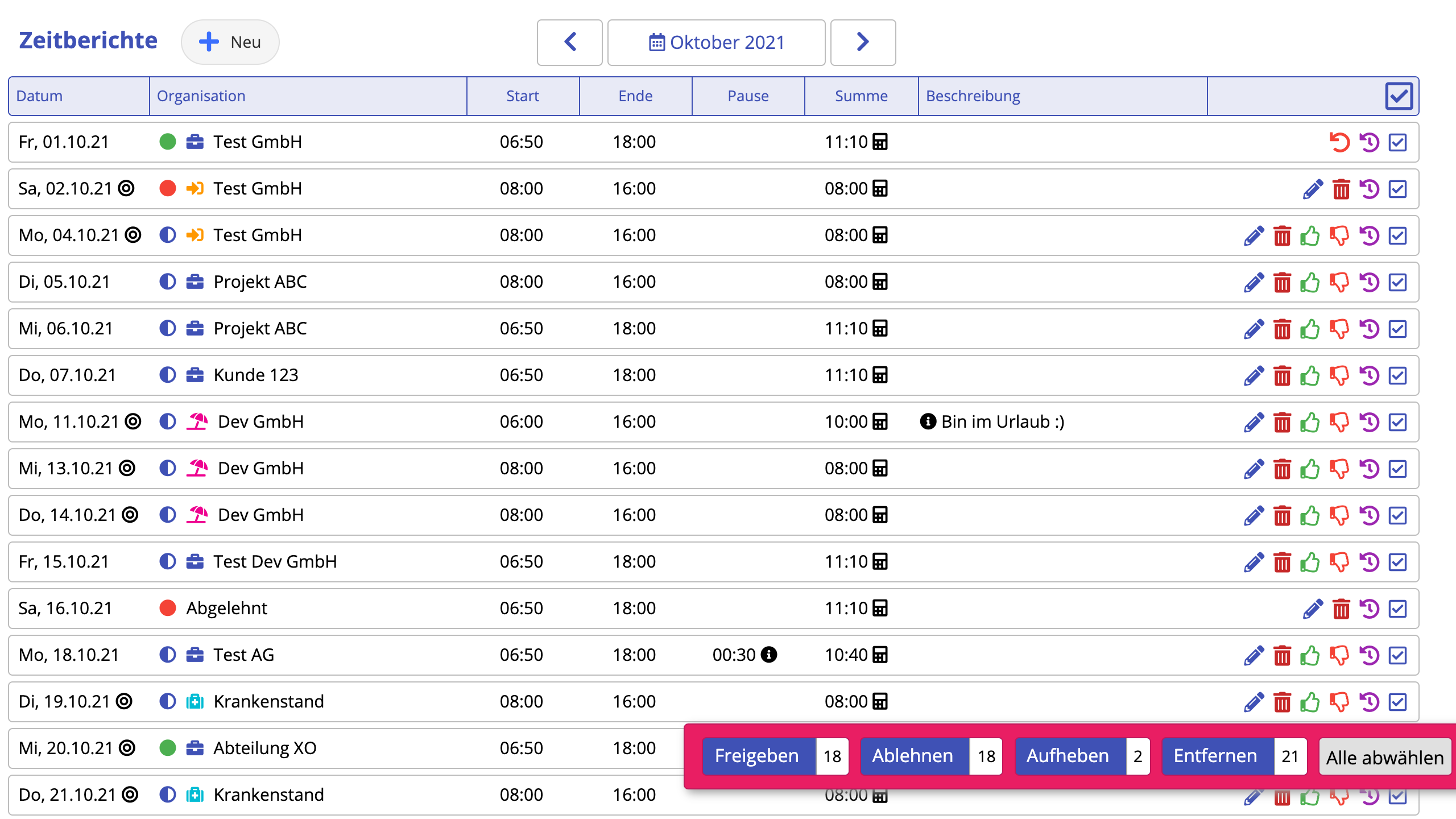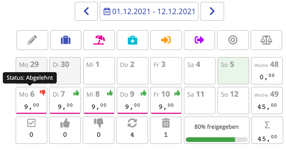 - Approve or reject time recording