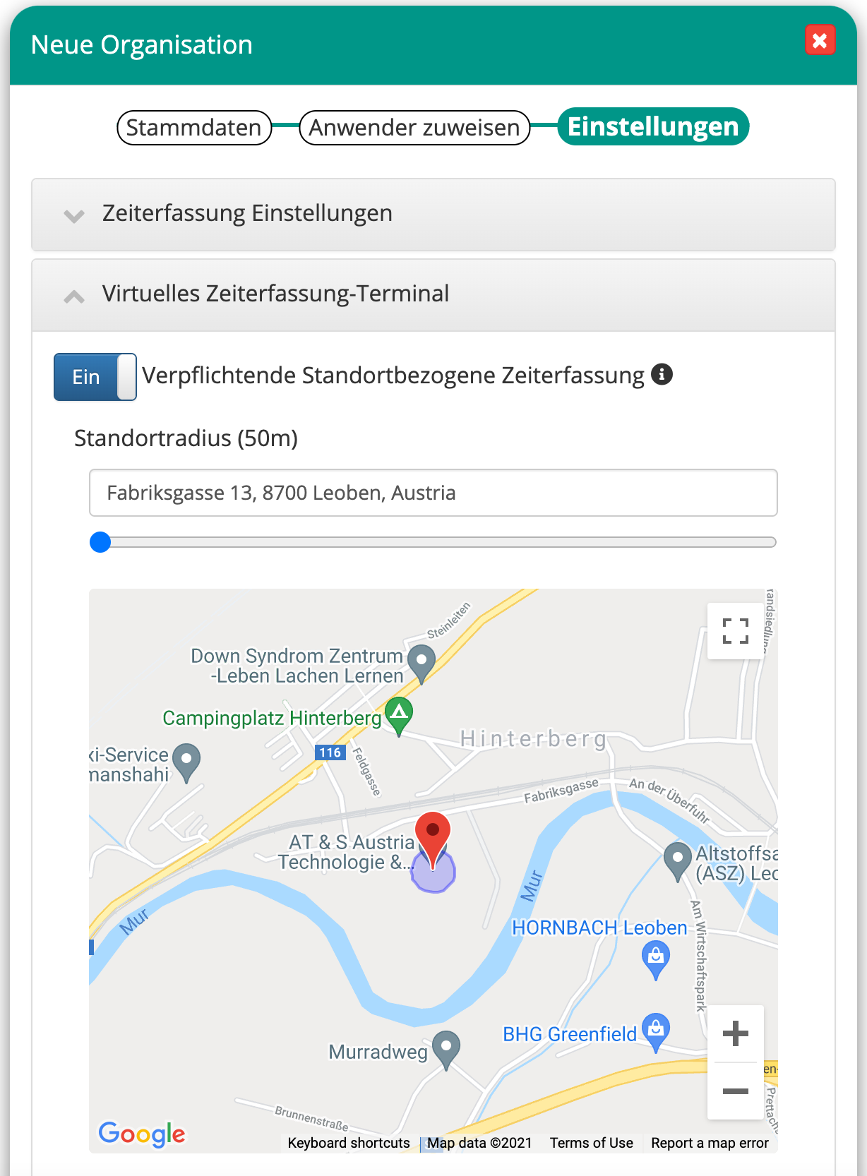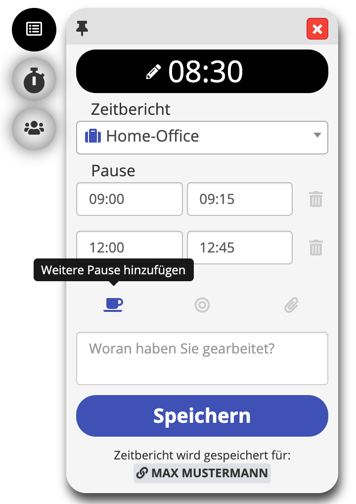 - GPS location-based time recording
